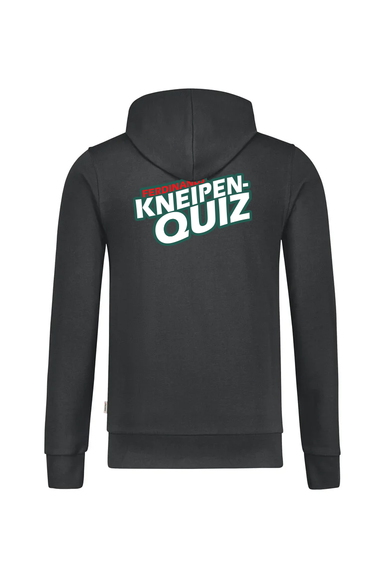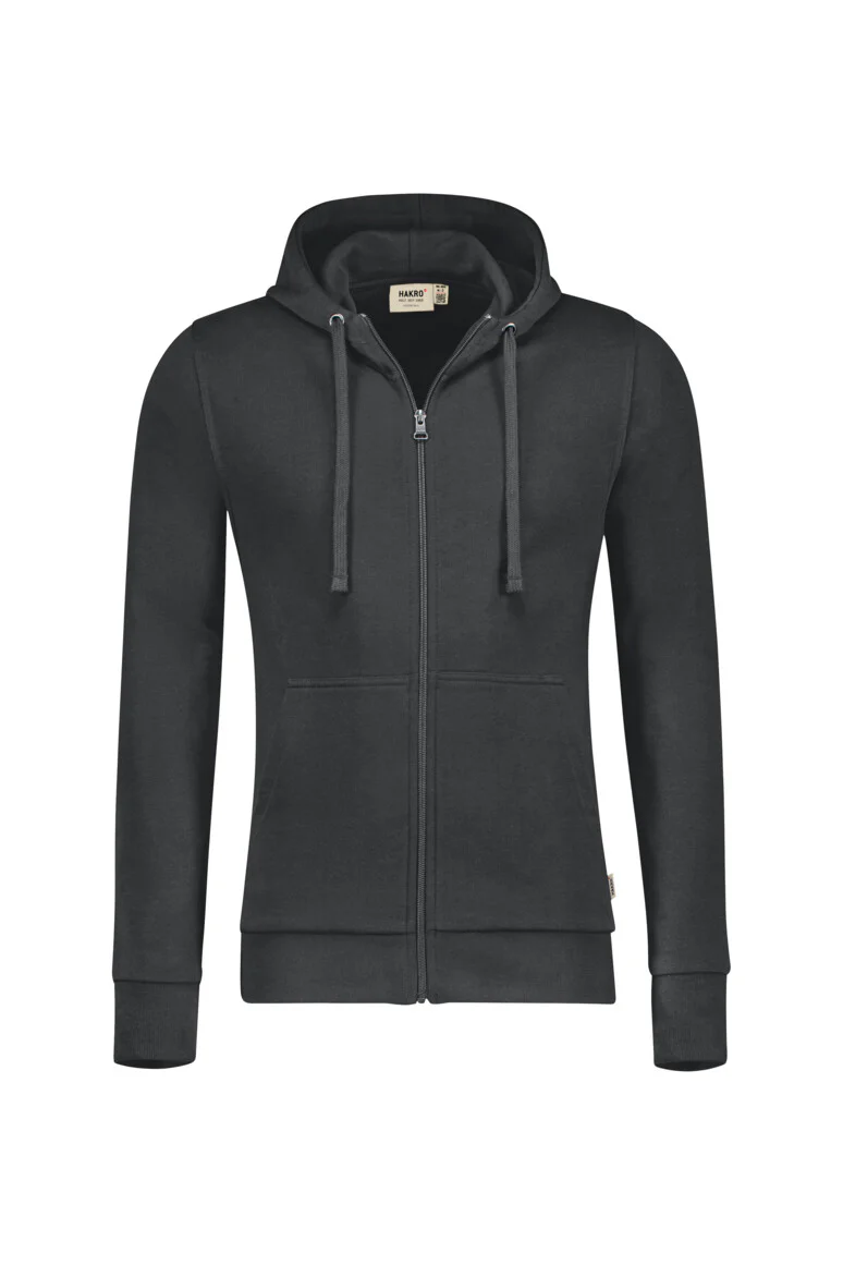 Hochwertige Kapuzen-Sweatjacke mit gefütterter Kapuze, Kordel, sowie hochwertigem Reißverschluss und Metallösen von YKK®.